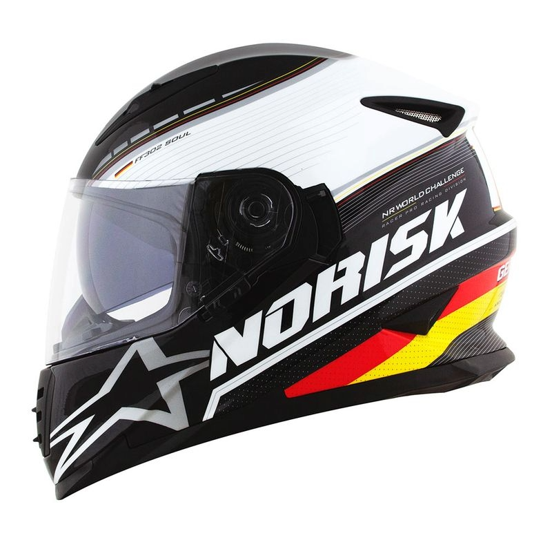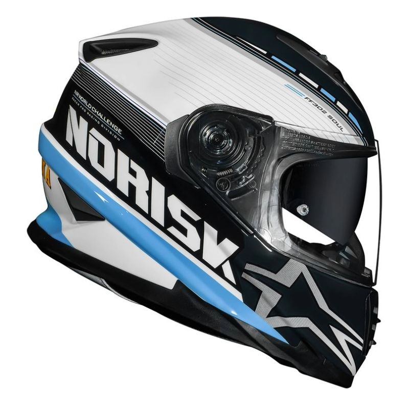 Capacete Norisk. Características: Aqui na NORISK, não seguimos o óbvio, criamos nosso próprio caminho. Então, quando dizemos que somos "descolados", é um compromisso com a mudança e a evolução constante. Estamos aqui para garantir a segurança dos nossos #noriskers. Bora fazer barulho no mundo motociclista #wemakenoise. Há muitos novos caminhos para percorrer com a sua moto e, naturalmente, você precisa de praticidade em suas aventuras. Por isso, a NORISK desenvolveu o Route, uma nova proposta "Feito para quem passa muito tempo com a moto" – Destaca o conforto e a leveza dos capacetes Norisk, ideais para longas jornadas.